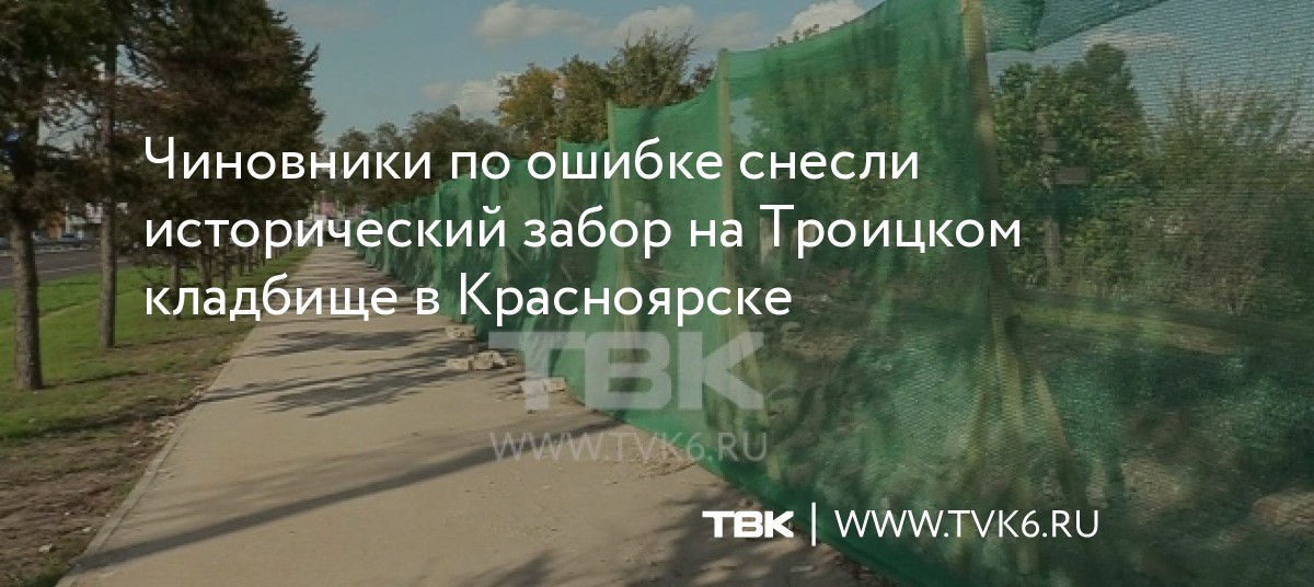 Чиновники по ошибке снесли исторический забор на Троицком кладбище в Красноярске