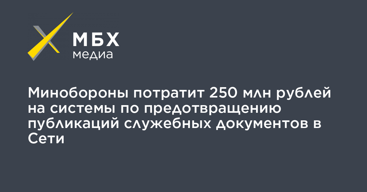 Министерство обороны намерено потратить 250 млн рублей на закупку систем «предупреждения фактов несанкционированного размещения служебных документов» в интернете. Соответствующий тендер «МБХ медиа» обнаружило на портале госзакупок.