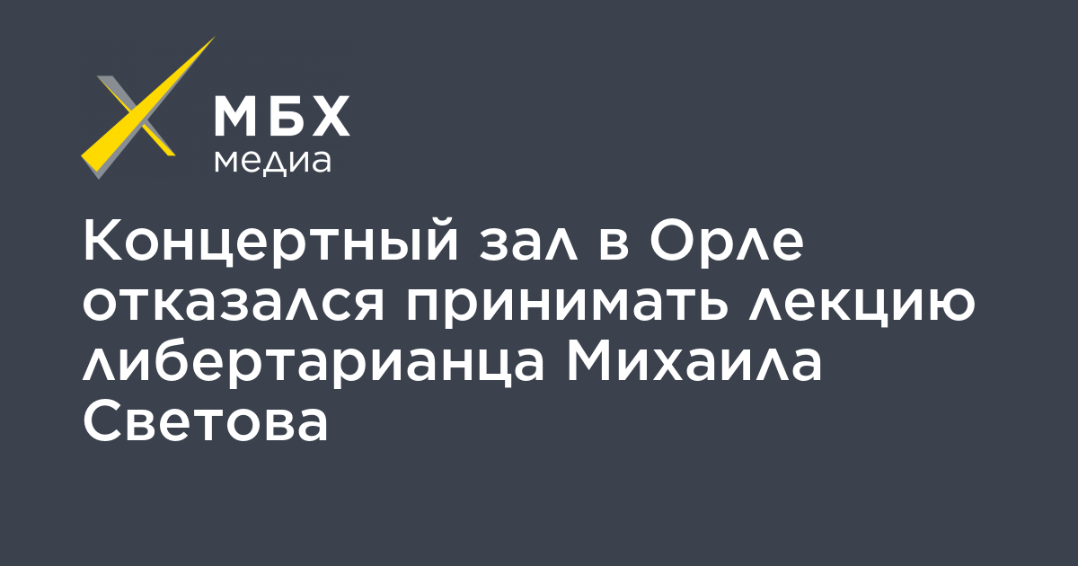 Концертный зал «Герц» в Орле отказался принимать лекцию одного из лидеров Либертарианской партии Михаила Светова за три часа до мероприятия. Об этом Светов сообщил «МБХ медиа».