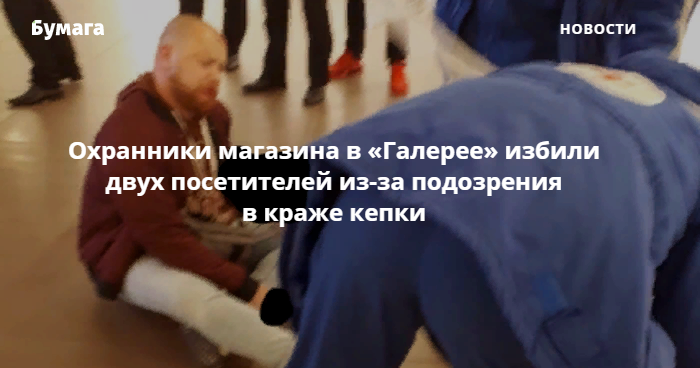 Вечером 22 сентября охранники в ТРЦ «Галерея» избили двух мужчин, которых заподозрили в краже. Об этом сообщают очевидцы в группе «ДТП и ЧП».