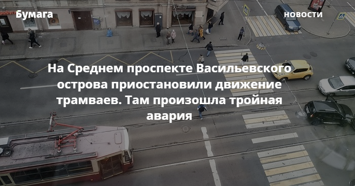На Среднем проспекте Васильевского острова приостановили движение трамваев из-за тройной аварии. Об этом рассказали «Бумаге» в пресс-службе администрации Василеостровского района.