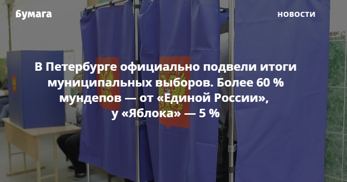 В Петербурге утвердили итоги муниципальных выборов. Релиз с распределением депутатских мандатов прислал «Бумаге» представитель Горизбиркома.