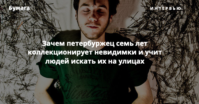 Никита Сивушкин семь лет собирает невидимки для волос, которые находит повсюду — на тротуарах и в метро. В его коллекции уже около 8,5 тысячи. Он составил интерактивную карту найденных заколок и написал методичку «О шпильках и невидимках», а этим летом провел 10 экскурсий в Петербурге и Москве.