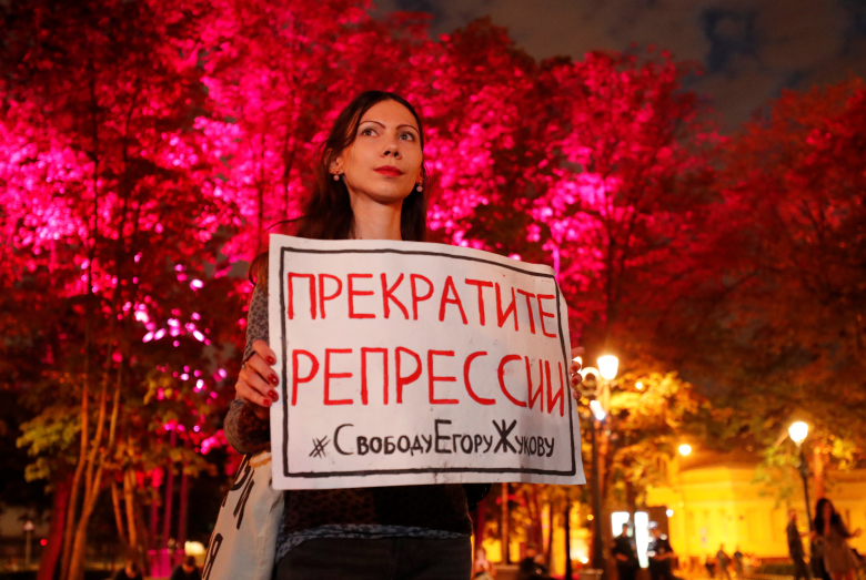 Участница пикета в поддержку фигурантов "московского дела". Фото: Shamil Zhumatov / Reuters