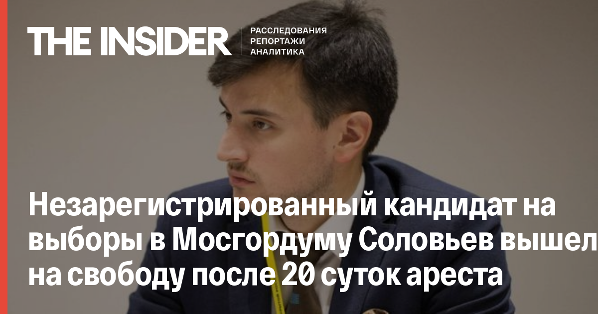 Незарегистрированный кандидат на выборы в Мосгордуму Соловьев вышел на свободу после 20 суток ареста