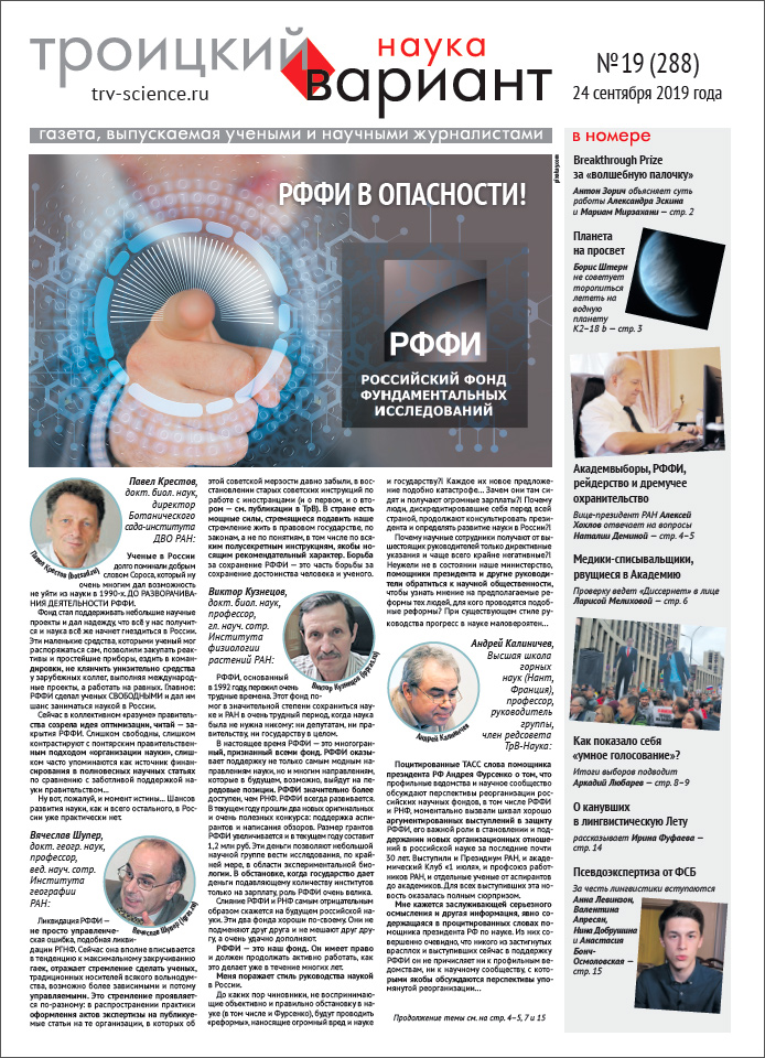 ТрВ № 19 (288) за 2019 г.: РФФИ в опасности!
