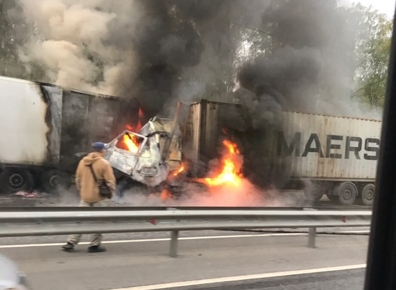 По предварительным данным, фура, принадлежащая датскому перевозчику MAERSK, на ходу врезалась в большегруз, стоящий на обочине. Виновник аварии 1952 года рождения ехал в сторону Владимира и, вероятно, заснул за рулем.