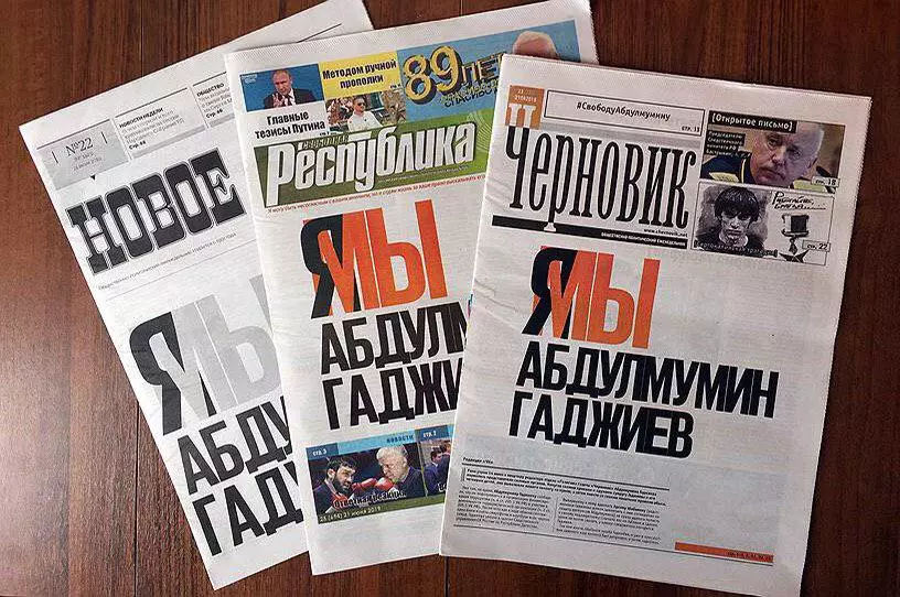 Этим летом Иван Голунов не стал единственным журналистом, против кого завели уголовное дело. Спустя пару дней после освобождения расследователя «Медузы» в Дагестане завели дело на редактора отдела религии издания «Черновик» Абдулмумина Гаджиева: по статьям об участии в террористической организации (часть 2 статьи 205.1 УК РФ) и содействии террористической деятельности (часть 4 статьи 205.1 УК РФ). Через неделю, пытаясь повторить московский опыт, три дагестанские газеты — «Черновик», «Новое дело» и «Свободная республика» — вышли с первыми полосами в поддержку Гаджиева. Но дело в отношении журналиста «Черновика» не прекратили.
