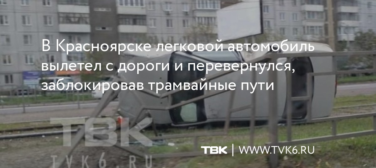 В Красноярске легковой автомобиль вылетел с дороги и перевернулся, заблокировав трамвайные пути