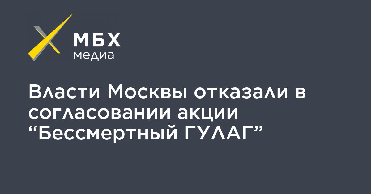 Власти Москвы отказались согласовывать акцию в память о жертвах коммунистического террора и в поддержку политзаключенных «Бессмертный ГУЛАГ», об этом «МБХ медиа» сообщил один из заявителей мероприятия Михаил Шнейдер.