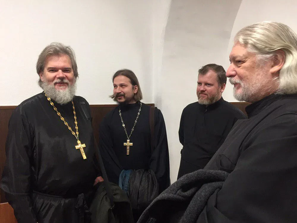 В четверг в Басманном суде Москвы снова было людно: перед входом толпились десятки людей, журналистов с камерами, которых не пускали в здание суда. В 11.30 должен был состояться суд о продлении меры пресечения 34-летнему предпринимателю Алексею Миняйло. У зала заседаний чинно прогуливались священники в черных рясах. Протоиреи во главе с настоятелем храма Животворящей Троицы в Хохлах Алексеем Уминским пришли выразить свой протест против несправедливого «московского дела» и выступить поручителями Миняйло. Началось заседание спустя три часа.