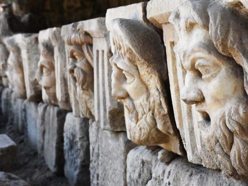 Более десятка мраморных блоков с вырезанными на них театральными масками нашли археологи при раскопках древнего города Стратоникея на юго-западе современной Турции.
