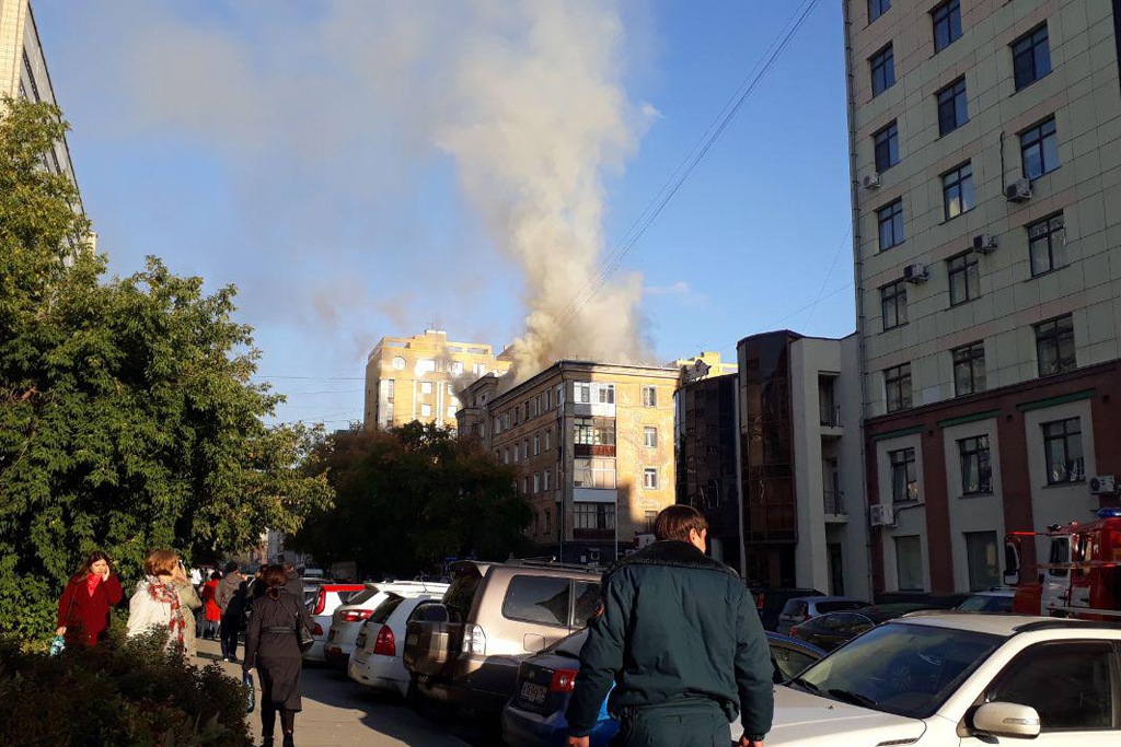 UPD (18:49) Открытого огня нет и дыма стало меньше.