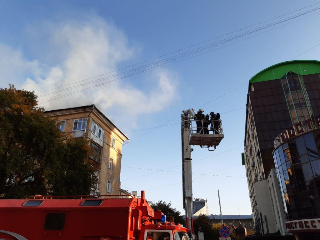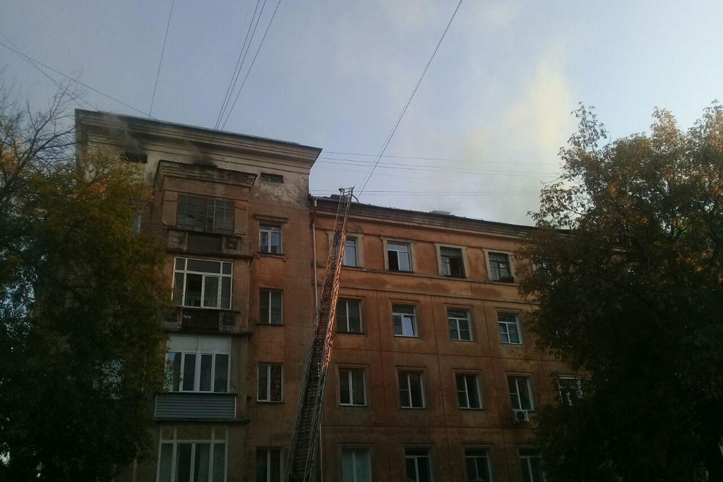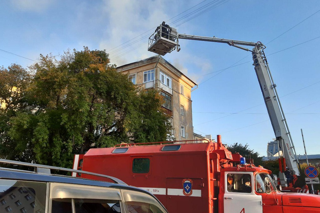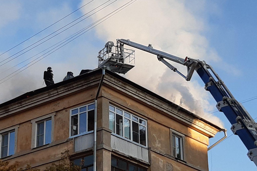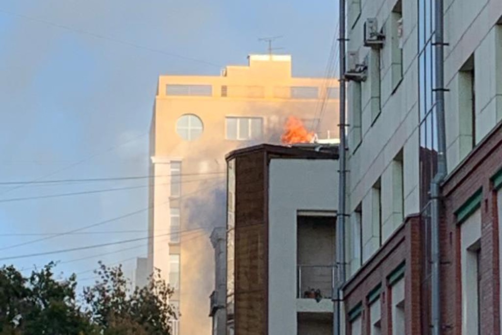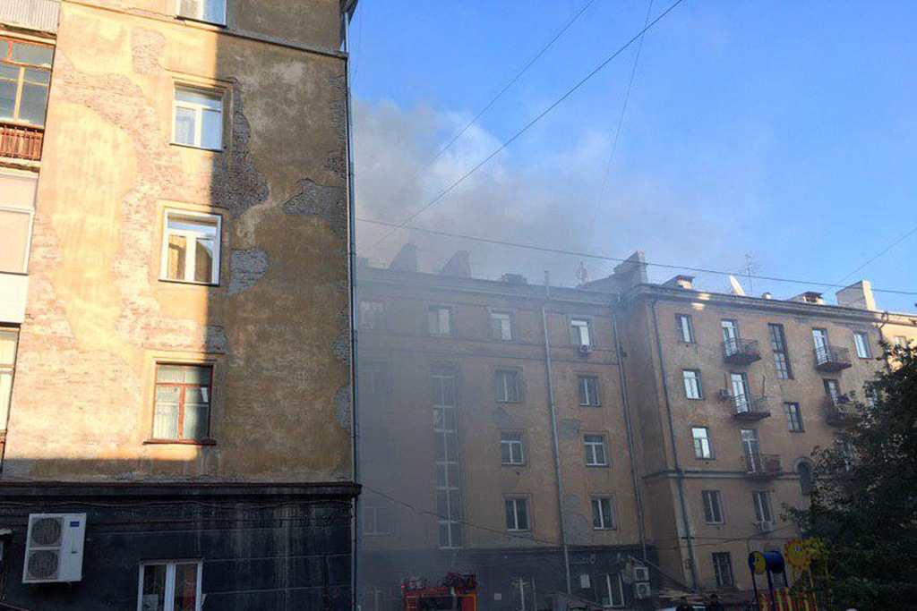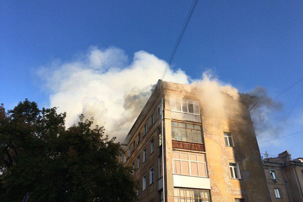 UPD (20:05) В МЧС сообщили о ликвидации пожара. В ведомстве прокомментировали, что оперативная группа Центра управления в кризисных ситуациях квадрокоптером обследует здание с воздуха. Кроме того, при помощи тепловизора пожарные проверяют все квартиры на верхних этажах, чтобы исключить наличие скрытых очагов тления.
