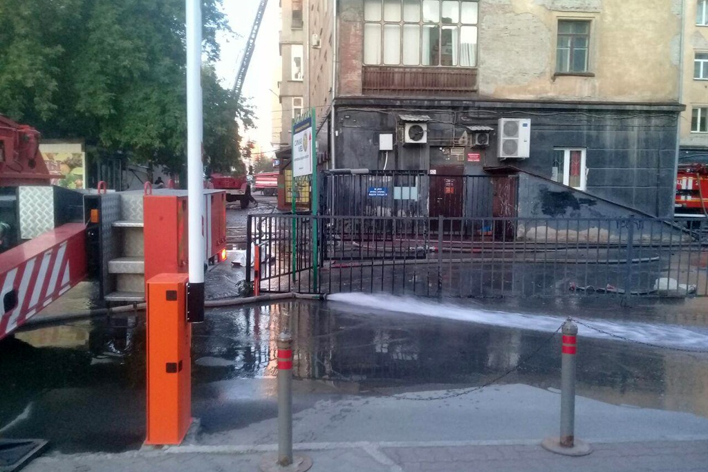 UPD (18:06) Пожарные развернули несколько лестниц.