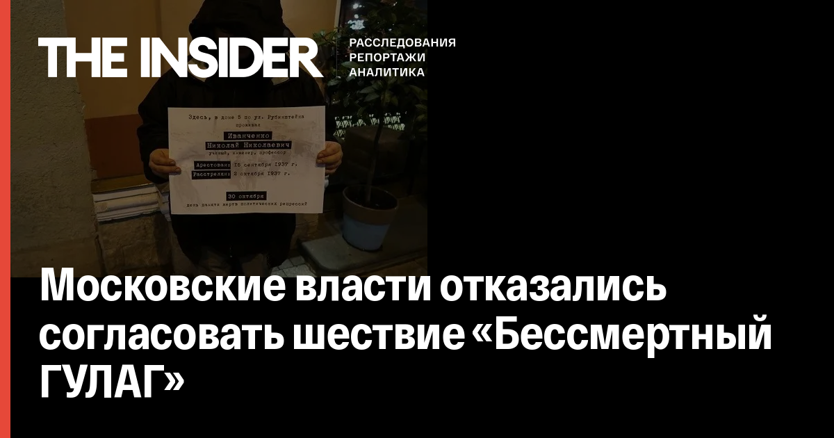 Мэрия Москвы отказалась согласовать шествие памяти жертв политических репрессий и в поддержку нынешних политзаключенных «Бессмертный ГУЛАГ» 6 октября. Об этом сообщил один из заявителей Андрей Нечаев.