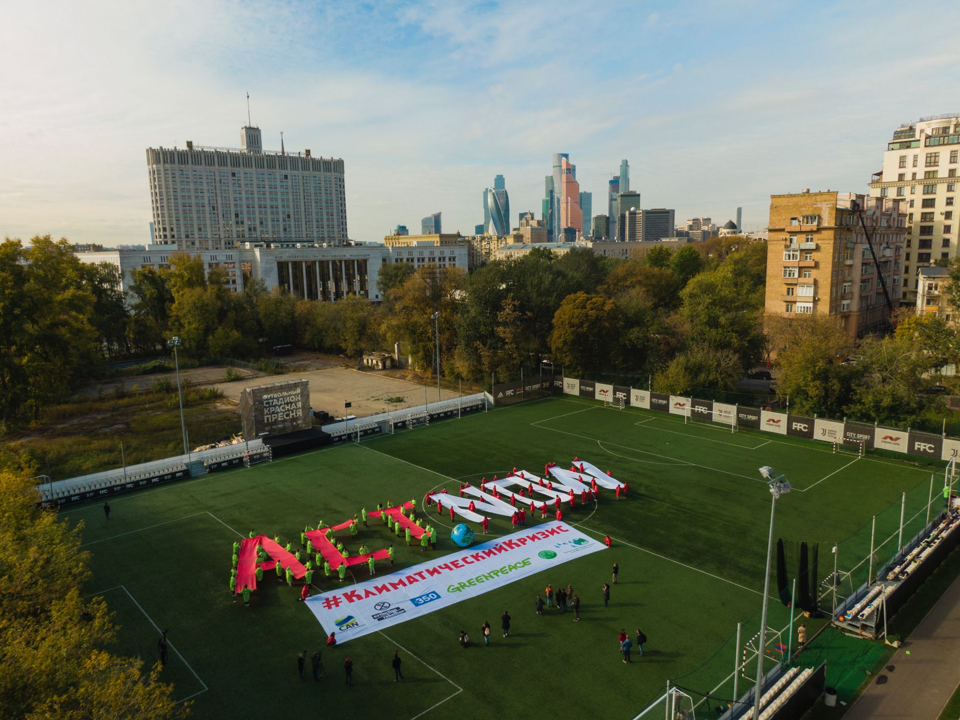 Sergey Firsov / Greenpeace Russia Protesters in 20 Russian cities joined a global strike for climate action on September 27. Most of the Russian strikes built on previous efforts by local activists to organize individual pickets or receive official permits for small group pickets. However, one group of activists met in Moscow’s Krasnaya Presnya soccer stadium to launch a “creative protest action” in front of the White House, the home of the Russian government’s executive branch. The September 27 protests followed Russia’s ratification of the Paris Agreement on climate: Activists have noted that despite the ratification, their government has yet to take meaningful steps toward staving off climate breakdown. The groups demanding that the Russian government “act now” included the country’s national branches of Greenpeace, Fridays for Future, Extinction Rebellion, 350.org, and the Climate Action Network as well as the Russian Social-Ecological Union.