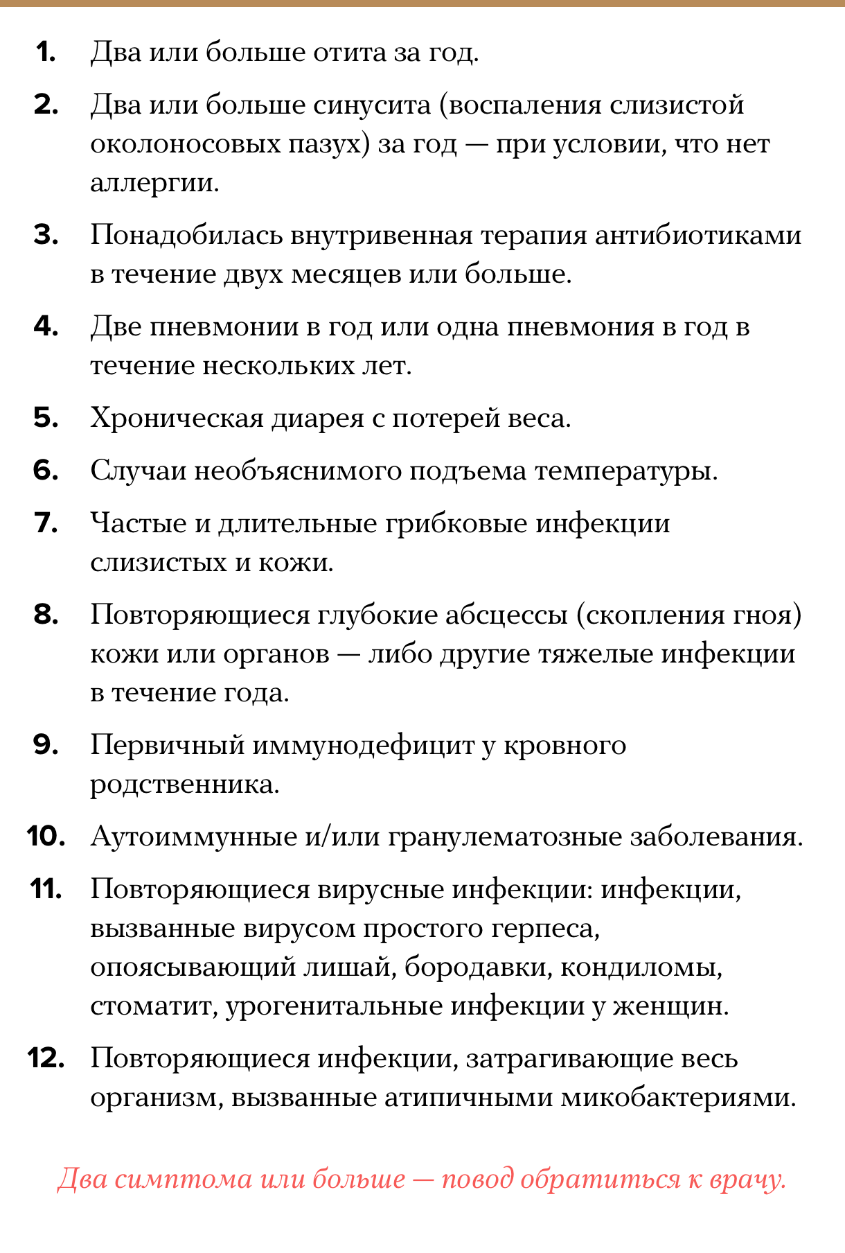Дата27.09.2019АвторСкрытИсточникМедузаСохранённая копияInternet ArchiveOriginal MaterialShow translationКак распознать первичный иммунодефицит у взрослого12 признаков — в одной картинке Этот список подготовили благотворительный фонд помощи детям и взрослым с нарушениями иммунитета «Подсолнух» и наш проект MeduzaCare.