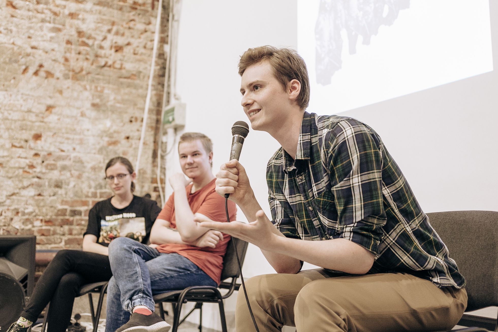 О своей необычной защите Артем Фирсанов рассказывал с импровизированной сцены в одном из помещений Сахаровского центра — 30 августа 2019 года здесь проходила встреча студентов и аспирантов московских вузов, посвященная протестам и борьбе за права учащихся.