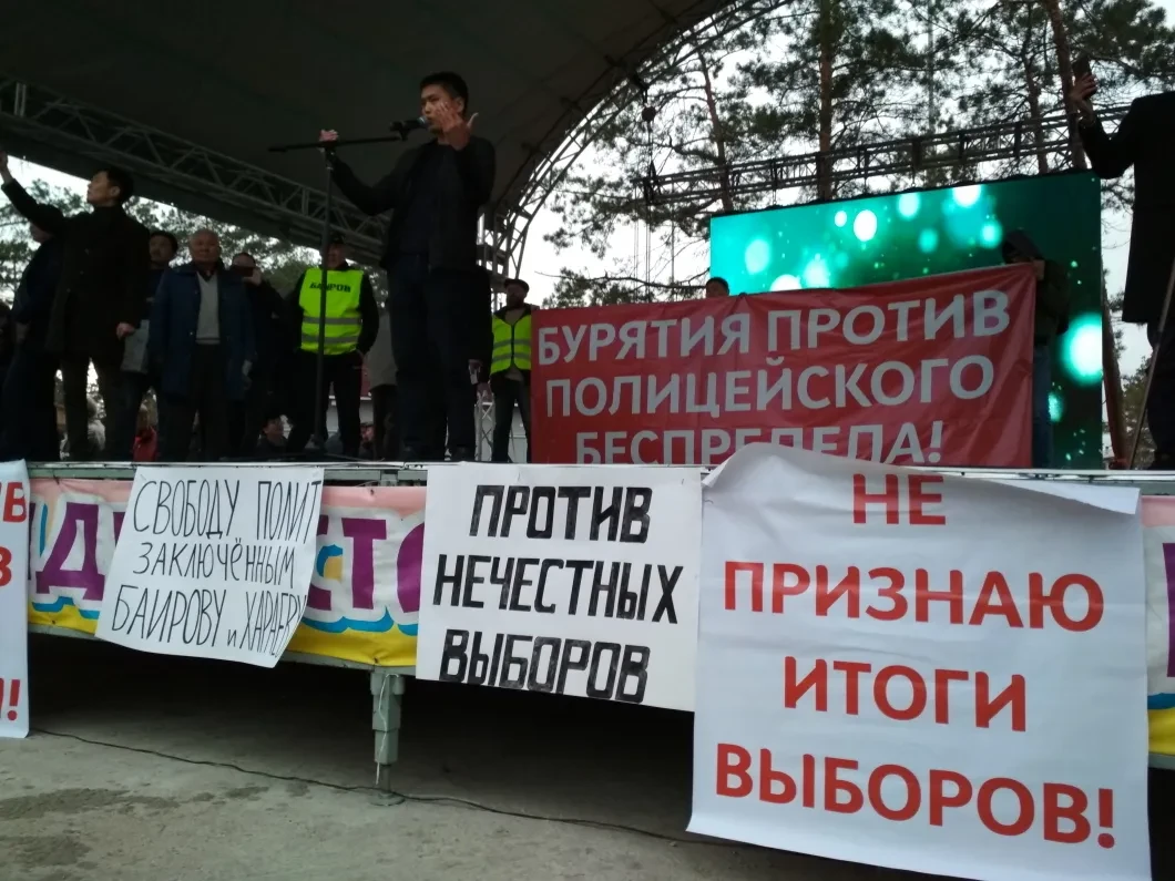 После выборов мэра Улан-Удэ 8 сентября в городе вспыхнули протесты. Люди вышли на площадь Советов и оставались на ней днем и ночью, требуя отпустить сторонников шамана Александра Габышева, а также таксиста-блогера Дмитрия Баирова и его товарищей, которые заступились за шамана. Одновременно люди на площади заявляли, что прошедшие выборы были сфальсифицированы, и требовали назначить новые. Поддерживаемый ими кандидат от КПРФ, член Совфеда Вячеслав Мархаев (37%) проиграл выборы «самовыдвиженцу от власти» Игорю Шутенкову (52%).