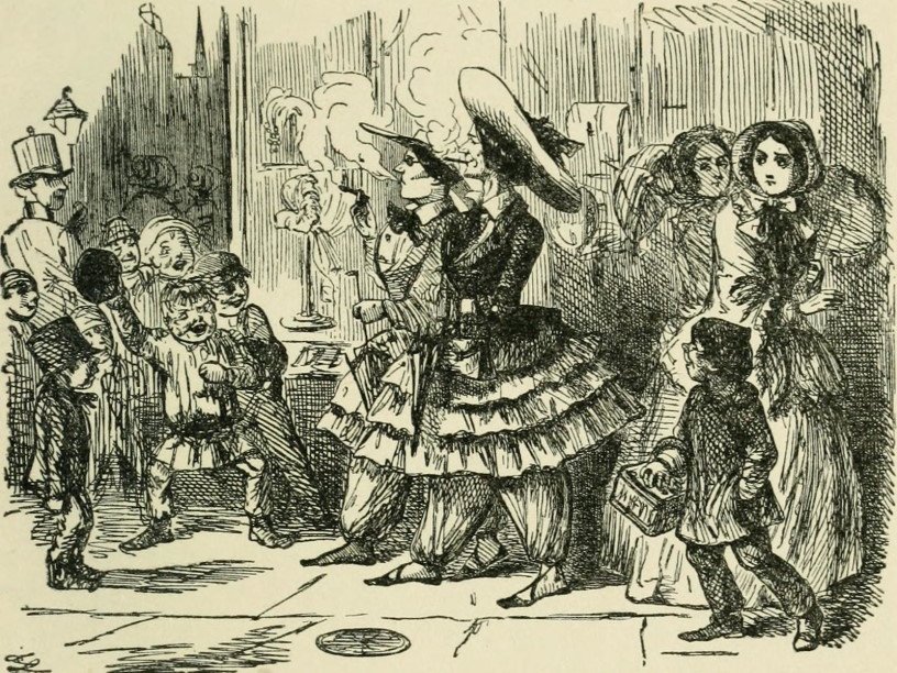 ...[это была] женщина в брюках из бумазеи, жилете (на этот раз с ливрейными пуговицами), розовой сорочке и сиреневом хлопковом чепце… около тридцати и замужняя: волосы соломенного оттенка, цвет лица золотисто-коричневый, кожа очень чистая. <…> Весьма почтенная женщина… на улице никто не обращал внимания на ее одежду — в Уигане встретить женщину в брюках куда менее странно, чем женщину в кринолине. Дикое место, населенное варварами (Ibid.: 76).