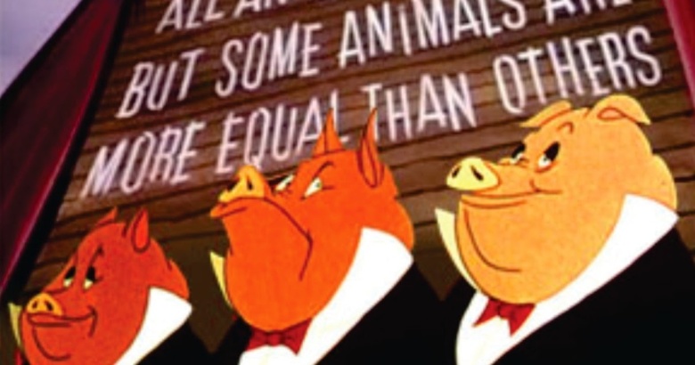 Кадр из британского мультфильма "Скотный двор" (1954): все животные равны, но некоторые животные более равны, чем другие