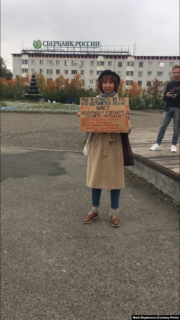 Одна из участниц акции рассказала корреспонденту сайта Север.Реалии, что российские чиновники и многие компании "отрицают чрезвычайную климатическую ситуацию".