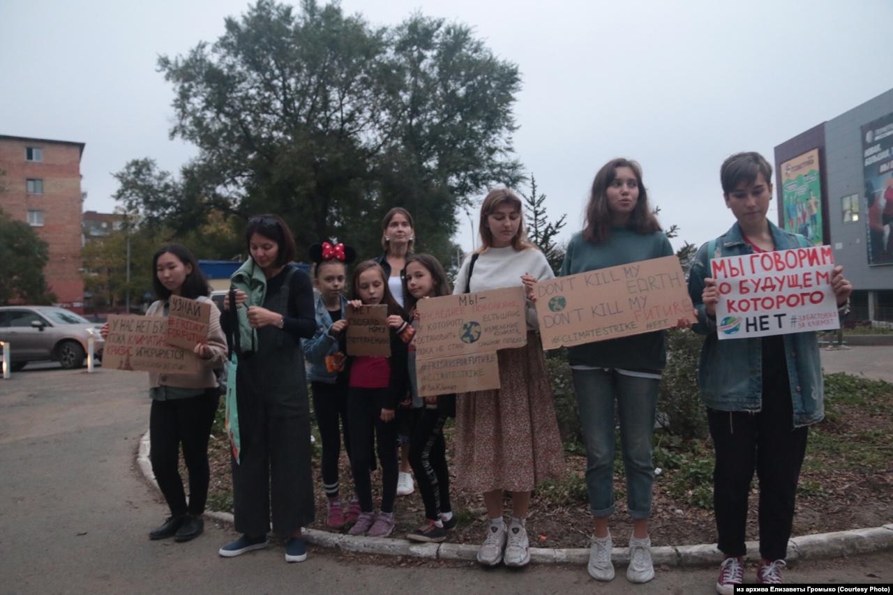 Организаторы российских мероприятий в поддержку международной акции Global Climate Strike, посвящённой борьбе с надвигающейся климатической катастрофой, открыли во Владивостоке митинг на 15 человек в сквере ветеранов в 18 часов по местному времени. Акция длилась два часа, сообщила редакции Сибирь.Реалии одна из организаторов Елизавета Громыко. "Изначально нас было шестеро. Но люди активно подходили к нам, интересовались, почему мы вышли, как они могут помочь снизить негативное влияние промышленности и другой деятельности человека на природу. Конечно, мы делимся в первую очередь практическими советами – про раздельный сбор мусора, отказ от пластиковых пакетов и т.д. В какой-то момент подошли несколько второклашек, так прониклись, что попросили нас нарисовать еще и для них плакаты", – сообщила экоактивист из Владивостока.