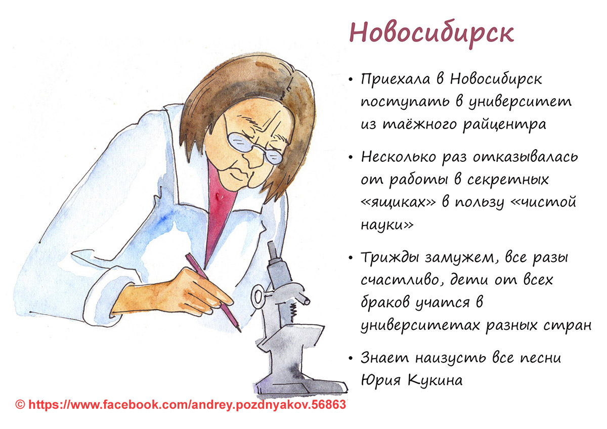 – Вот ваше изображение Новосибирска идет вразрез с официальным позиционированием. Власти любят использовать штампы вроде "Город, устремленный в будущее", "Новосибирск – город науки", а у вас его олицетворяет престарелая сотрудница НИИ.