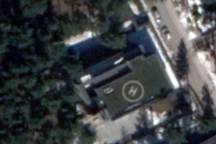 Судя по кадастровой карте на участке расположен особняк, но у него пока нет официального номера. Вероятно, он пока официально считается недостроенным — в декларации Диденко есть «объект незавершенного строительства» площадью 639,3 кв. м. На снимке со спутника видно, что на крыше здания нарисована буква «Н» в белом круге — так обычно обозначают площадку для посадки вертолета.