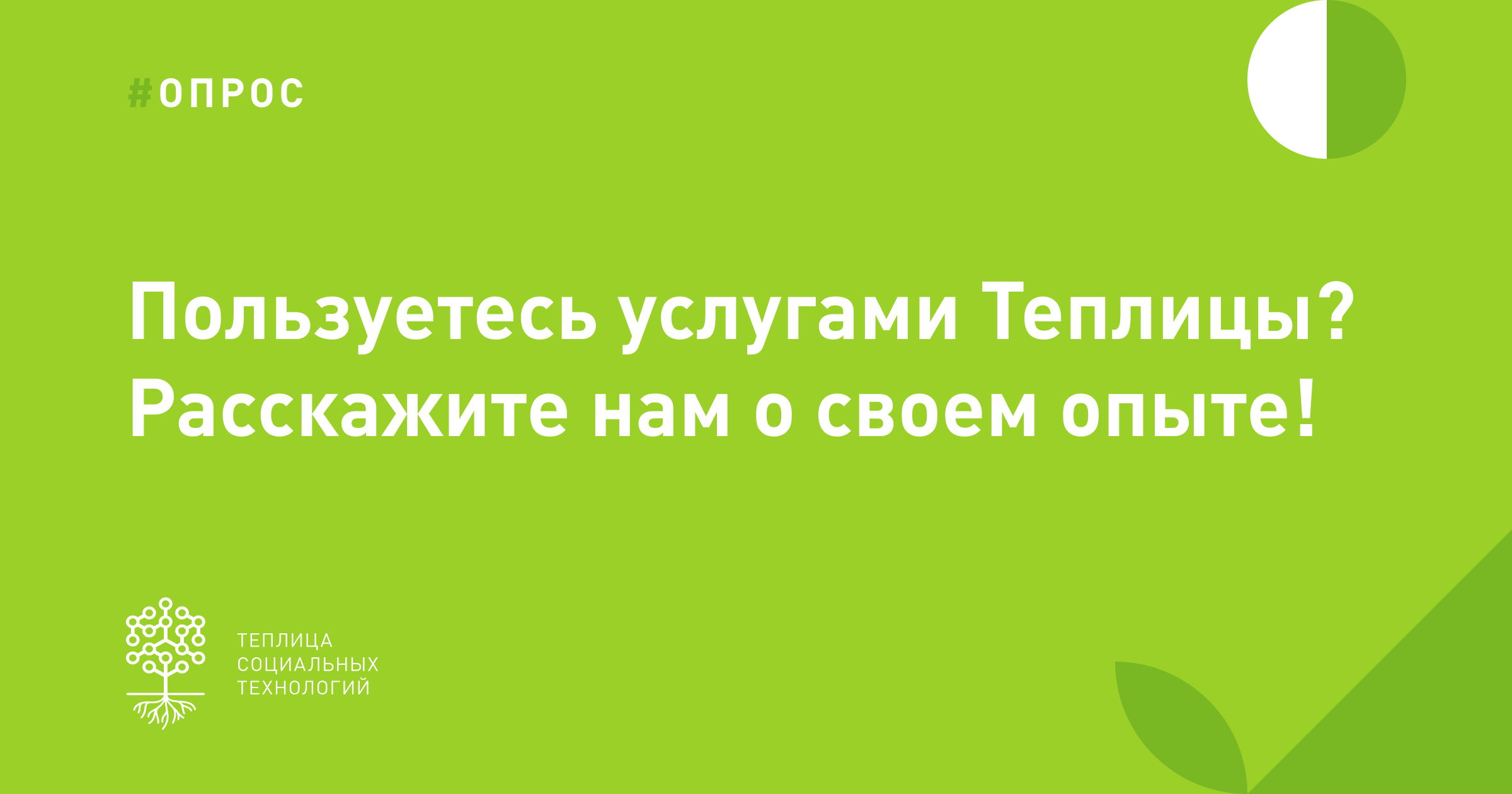 Приглашаем коллег из некоммерческого сектора России принять участие в опросе. Помогите нам стать лучше – ответьте на вопросы анкеты о качестве услуг и продуктов Теплицы социальных технологий. Анкета анонимная. Ответы на вопросы ждем до 5 октября.
