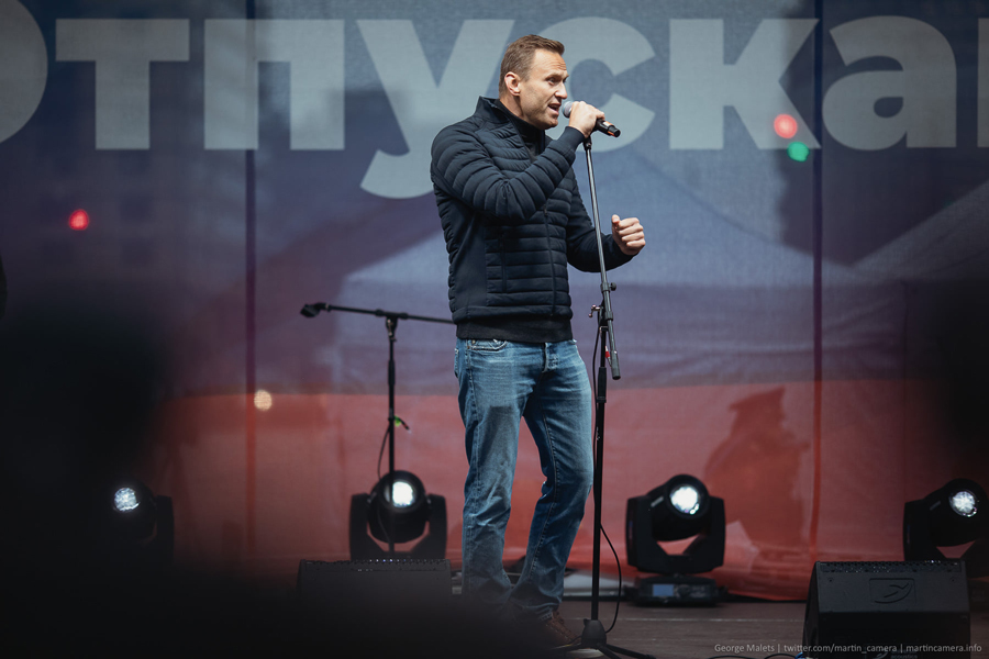 Следующего спикера встретили бурными аплодисментами — на сцену вышел Алексей Навальный (во время большинства предыдущих акций он задерживался или уже был под арестом). Над толпой сразу же показалось несколько десятков телефонов, снимающих речь главы ФБК. Монолог Алексея Анатольевича часто прерывался овациями и возгласами «Отпускай» и «Свободу». Его выступление стало, пожалуй, самым длительным на этом митинге.