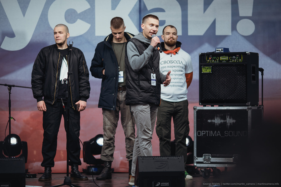 После небольшой музыкальной паузы от набирающей популярность в молодежной среде группы «Хадн дадн» (в одной из песен такие слова: «Пацаны, не бейте меня, пацаны, только в голову не бейте»), на сцену вышли экс-фигуранты «московского дела», вышедшие на свободу: Даниил Конон, Владислав Барабанов, Валерий Костенок и Алексей Миняйло. Последний, освобожденный на минувшей неделе, заявил: «Тот, кто живет ради любви, постоянно огребает. Особенно если это Любовь Соболь». Она и была следующим выступающим.