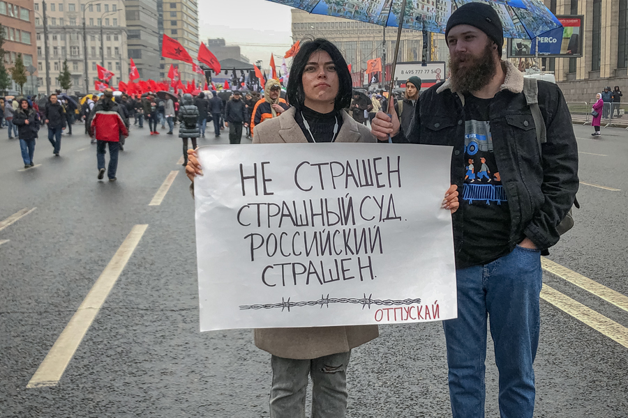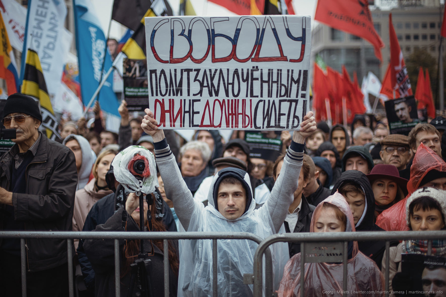 Основная повестка митинга — требование отпустить узников «московского дела» и остальных политзаключенных. На входе митингующим раздают плакаты, на которых представлено краткое описание того или иного уголовного дела. Некоторые стоят с плакатами собственного сочинения: «Их свобода — это моя свобода!», «Закрыть несправедливые дела — открыть прекрасную Россию будущего», «Не страшен страшный суд. Российский страшен!» Иные обыгрывают историю с якутским шаманом Сашей, который шел «изгонять Путина из Кремля», но был схвачен силовиками в Бурятии: «Гони Беса!»