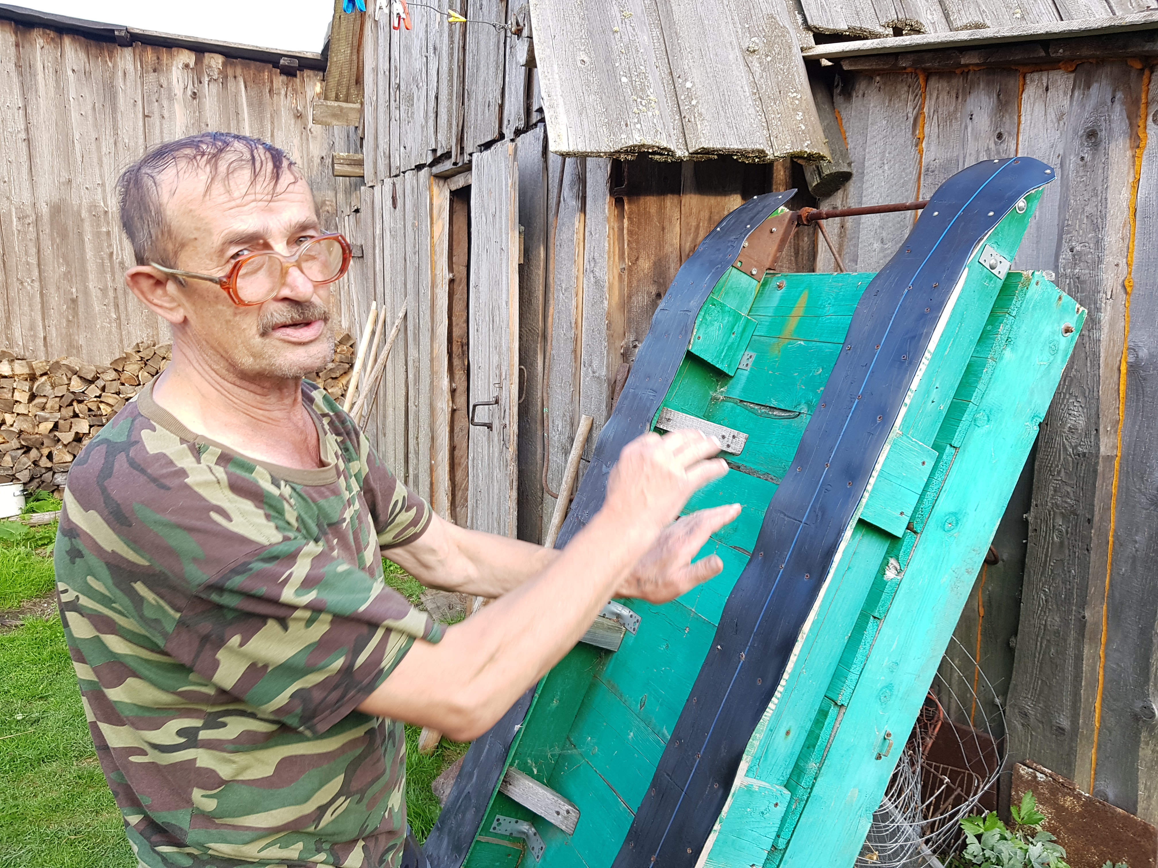 – Конструкция саней полностью деревянная, – рассказывает автор "проекта" Виктор Шаричев. – Позапрошлой зимой на них бабушку увозили. Ещё есть телега: как-то человек у нас в лесу потерялся – нашли мёртвым, так я его потом на ней вывозил. А бывало и на себе люди трупы по сугробам таскали.