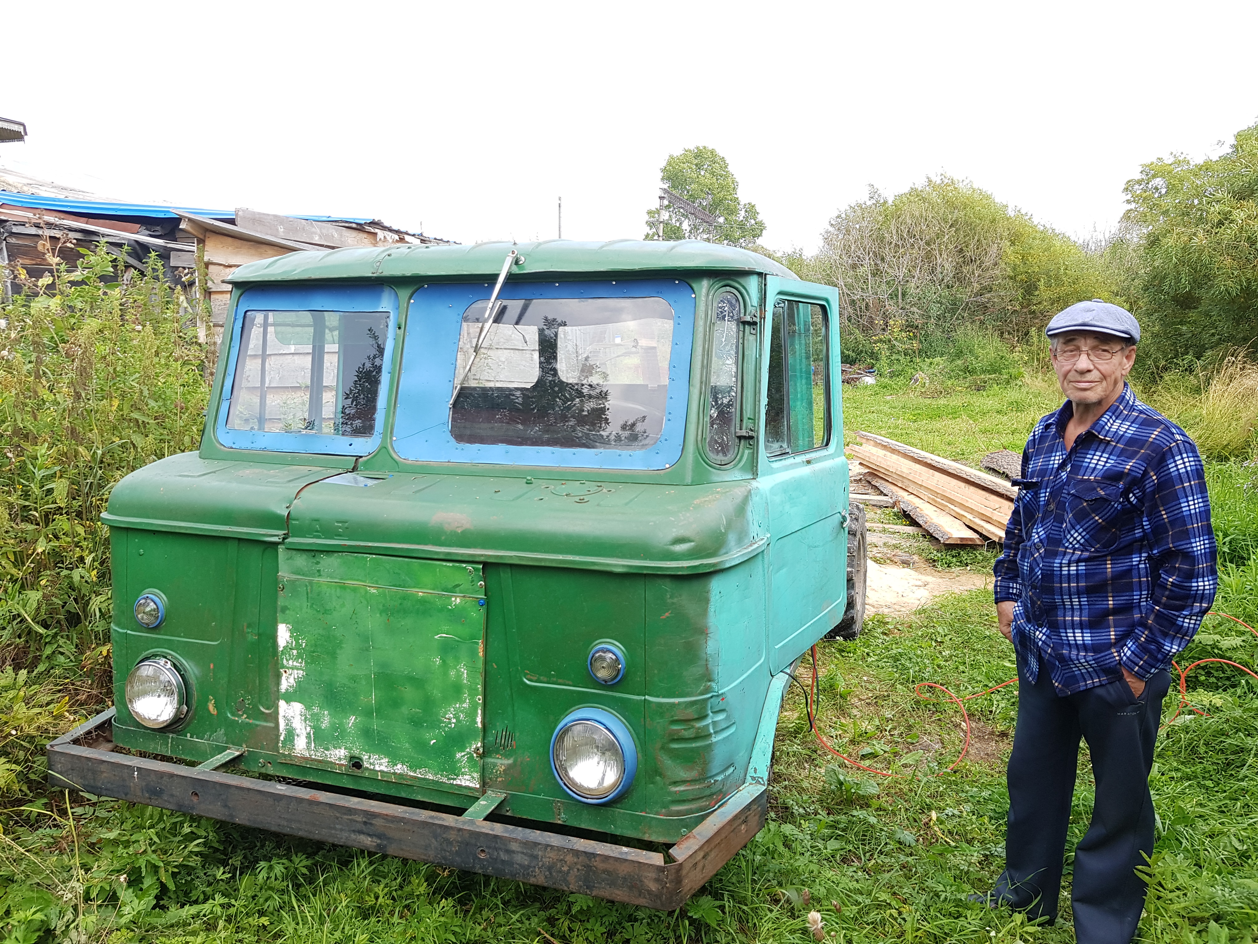 В свои 73 года Григорий Колчанов содержит небольшой огород. Говорит, сегодня это чуть ли не единственная возможность выжить в "безработном" посёлке. В целях экономии пенсионер сам мастерит всякую технику. В "коллекции" – машина для заготовки дров, молотильня для кедрового ореха и даже лесовоз.