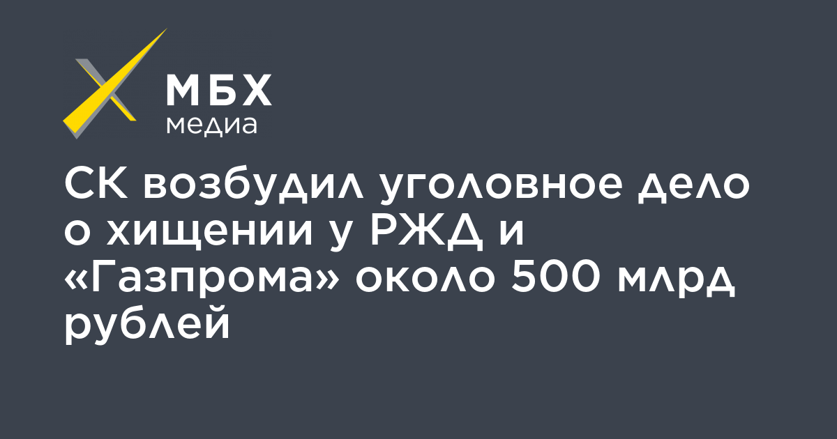 СК возбудил уголовное дело о хищении у РЖД и «Газпрома» около 500 млрд рублей