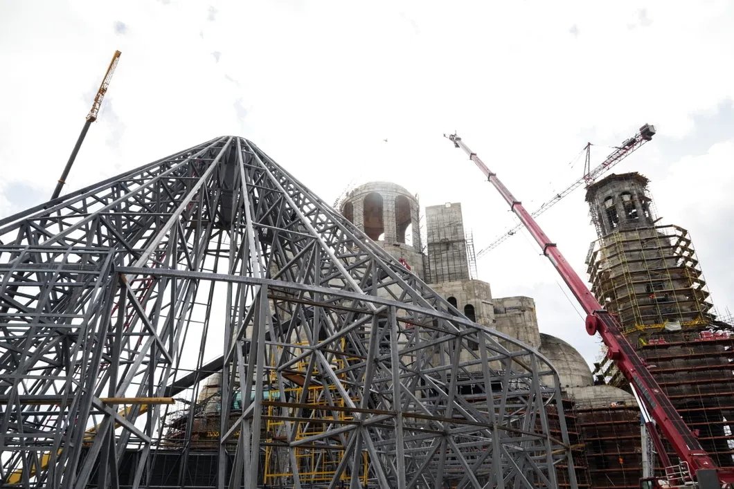 «Там много действительно сложных работ, особенно с учетом декора фасадов и внутреннего убранства. Согласно проекту, будет много бронзового литья, сложных художественных работ, стеклянная крыша, стеклянные фасады, керамический декор, фресковая живопись и мозаичные панно», — отмечает собеседник «Новой».