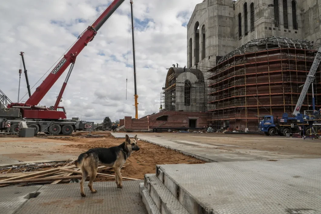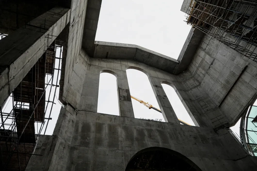 — Мне снаружи он кажется не таким большим, а вот когда стоишь внутри, даже несмотря на то, что все лесами закрыто, понимаешь этот масштаб, — говорит, мечтательно глядя на бетонные стены храма и копошащихся вокруг рабочих, заместитель начальника дирекции по строительству Евгений Григорькин. Он провел «Новой газете» подробную экскурсию по всей территории музейно-храмового комплекса.