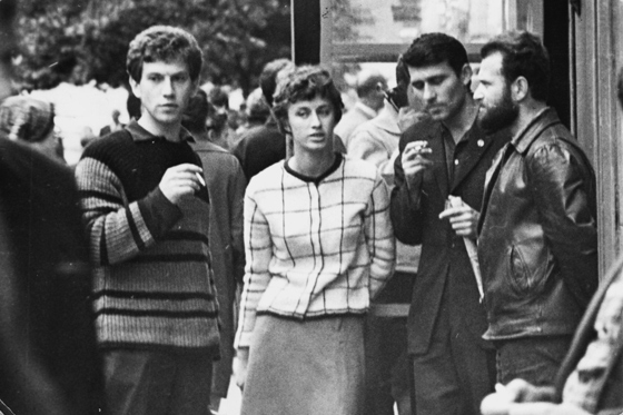 Один из моих первых визитов к газетному ларьку был в страшный мороз, мрачная черная громада здания «Известий» нависала за спиной, но, слушая Асаркана, мы не замечали ни холода, ни черной громады. Магия просветленных глаз Шумиловой, ее полуулыбки поразила меня с первой встречи. Она перемещалась зигзагами и кругами от одного собеседника к другому, окольцовывая всех и отзываясь на каждую реплику — если не словом, то взглядом, кивком или взмахом руки. У Асаркана, Айхенвальда и Улитина за долгие годы общения накопилось много счетов, и каждая их встреча была столкновением «заклятых друзей» (как острил Павел Улитин). В присутствии Лены эти вербальные конфликты, в любой момент готовые перерасти в склоку, заканчивались шутливой перебранкой — перебрасыванием иронических реплик: может быть, потому, что каждый перехватывал в этот момент взгляд Лены и пытался выглядеть в ее глазах легким и остроумным. Мы кружили по Москве. Хрущевская оттепель закончилась, закончились публичные чтения стихов на площадях, нависала пропагандистская легенда о ядерной угрозе и атомной войне, кафе «Артистическое» опустело, расцвел самиздат, потому что в ход в массовом порядке пошли пишущие машинки и магнитофоны. Это была квартирная, пресловутая «кухонная», культура. Асаркан же принципиально внедрял культуру внешнего, городского уличного общения, где друзей и знакомых встречаешь по ходу — в духе парижских ситуационистов — блуждания по центру Москвы с заходами на чашку кофе эспрессо в несколько любимых точек-забегаловок. Это была попытка публичного общения, но для круга личных друзей.