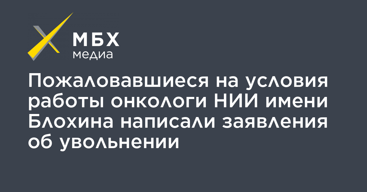 Пожаловавшиеся на условия работы онкологи НИИ имени Блохина написали заявления об увольнении