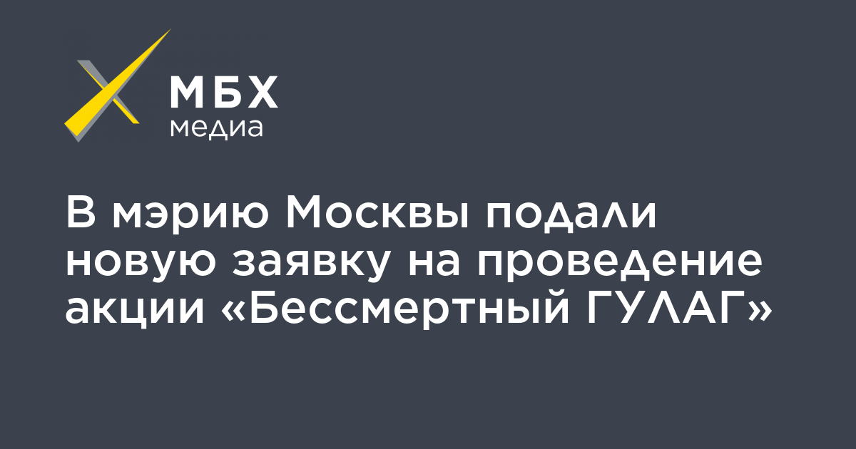 В мэрию Москвы подали новую заявку на проведение акции в память о жертвах коммунистического террора и в поддержку политзаключенных «Бессмертный ГУЛАГ» на проспекте Сахарова 13 октября. Об этом сообщил «МБХ медиа» один из заявителей мероприятия Михаил Шнейдер.