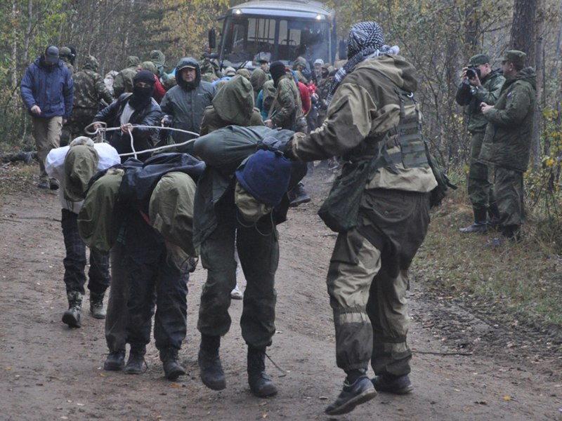 На полигоне, говорит Свят Павлов, захваченных заставляли ползать по камням с мешками на голове — «на коленях, на локтях, на карачках, как угодно, и при этом пинали постоянно».
