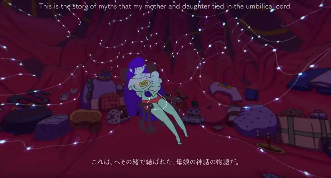 В японском фильме «Mowb» Кадзуки Юхара само название символизирует «зеркальное отражение матери и дочери». Дочь связана с матерью пуповиной, через которую впитывает жизненную энергию. Одна жизнь поглощает, выпивает другую. По пуповине, как по тонкой нити, идет ребенок, взрослея, двигаясь между звезд. Пуповина связывает мать с предыдущими и еще не рожденными поколениями. Астронавт, потерявший работу, приходит в бюро трудоустройства в галстуке и скафандре. Что ему могут предложить? Жать кнопки и рычаги на детской карусели? Разносить попкорн в кинотеатре?