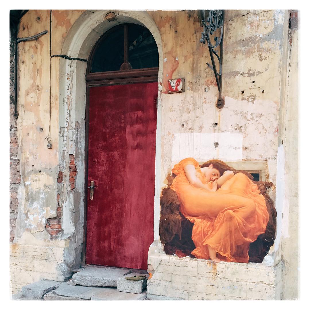 Полоз отмечала, что не клеит репродукции на стены исторических домов или зданий со свежим ремонтом. Вместо этого она выбирает старые стены с трещинами и осыпавшейся штукатуркой.