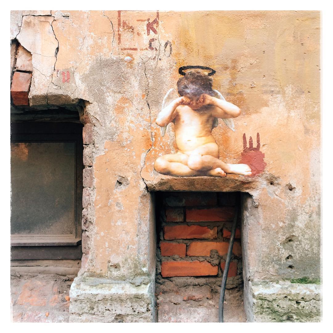 — Я клею картины на полуразрушенные здания, которые давно не ремонтировались. Это всё смотрится гораздо круче, когда рядом есть трещины, плесень, обвалившаяся штукатурка. Поэтому я ищу красивое место, но при этом, чтобы оно было проходным.