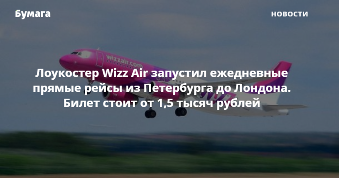 Европейский лоукостер WizzAir запустил ежедневные прямые рейсы из аэропортов Петербурга и Москвы до аэропорта Лутон в Лондоне. Об этом сообщает пресс-служба перевозчика.