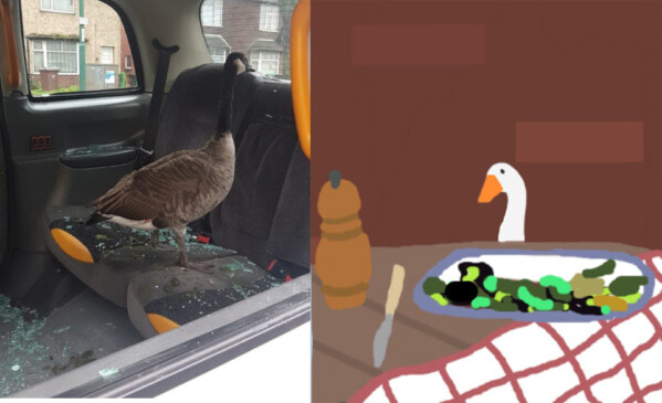В Британии гусь ворвался в машину, разбив окно. Интернет увидел в этом влияние игры-мема про вредного гуся