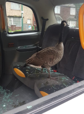 1 октября региональное отделение радио Би-би-си в графстве Ноттингемшир (Великобритания) рассказало о необычной ситуации: в городе Рэдфорд гусь вломился в автомобиль к таксисту. Птица разбила стекло и приземлилась на заднем сидении. После проверки ветеринара гуся отпустили — он не пострадал.