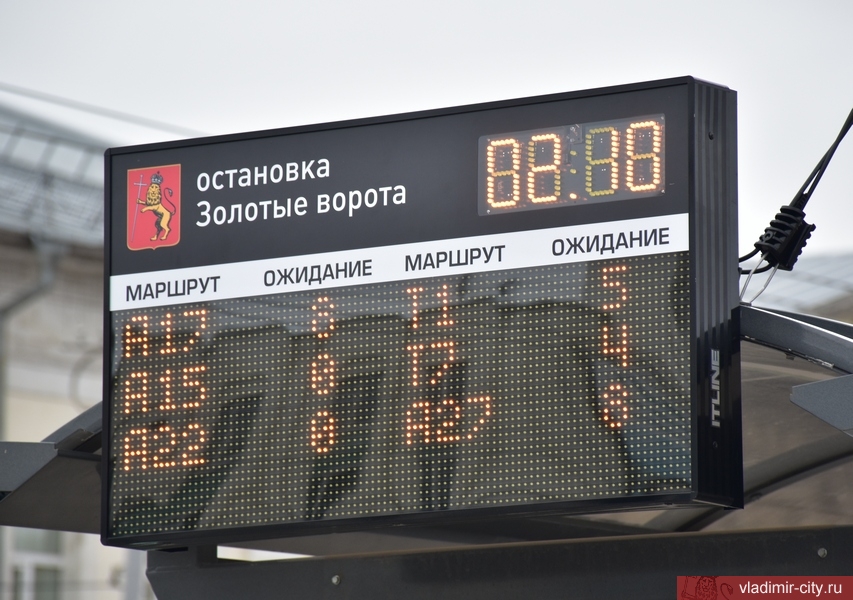 Во Владимире на остановке “Золотые ворота” установили электронное информационное табло